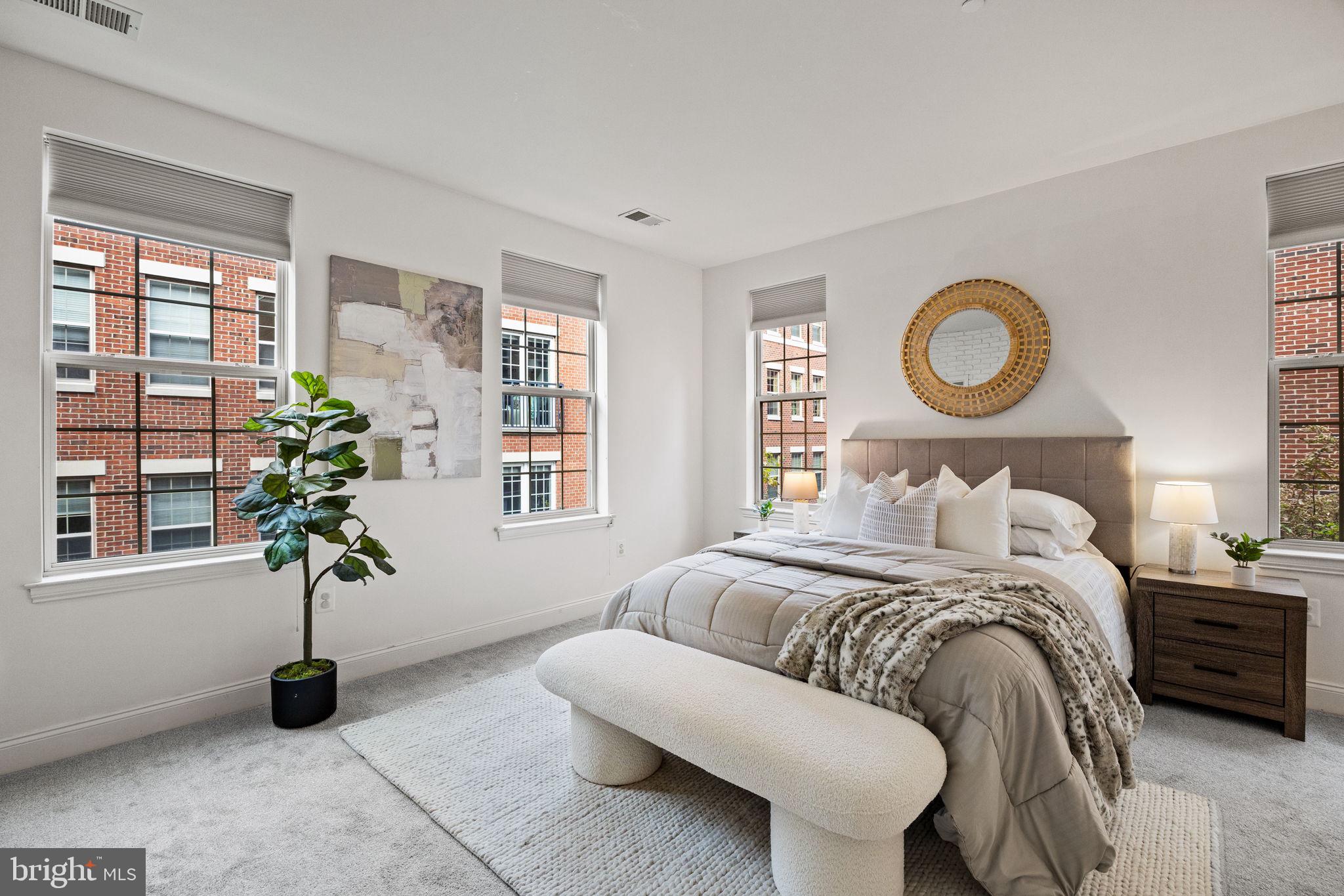 Incredible Naval Square opportunity: Beautiful 2-story, lower-level 3-bedroom, 2.5-bath END-unit with attached garage! Tucked away along a lovely, lush, landscaped pathway, this well-maintained home features a private terrace spanning the entire width of the property. First Floor: Enjoy an open-concept living and dining area, a discrete half bath, and an expansive kitchen outfitted with an upgraded KitchenAid appliance package, shaker-style maple cabinetry, stone countertops, a large pantry, and a stylish glass tile backsplash. Gorgeous Brazilian cherry hardwood flooring and ample recessed lighting elevate the entire level. A large coat and storage closet is conveniently located beneath the stairs. Second Floor: The spacious owner's retreat features a chic exposed brick wall, an oversized walk-in closet, and a luxurious bath with granite and tile upgrades, private water closet, linen closet, dual sinks, soaking tub, and a separate stall shower. Two additional sun-filled bedrooms boast 8-foot French sliders that open to a large covered terrace. A laundry area with front-loading washer and dryer, along with a shared hall bath, complete this level. As a desired end-unit, this home enjoys extra windows, providing an abundance of natural light throughout. Additional features include ample storage and shelving in the garage, plus Smart Home upgrades such as dual Ecobee thermostats, Ring alarm system, August Wi-Fi smart lock, and pre-installed wiring for a NEMA 14-50 outlet or Level 2 (240-volt) electric car charger in the attached garage. Have peace of mind that all of your mechanical are in great condition: hot water heater replaced in 2022 and HVAC system in 2024. Enjoy the ease of having the pool and state-of-the-art fitness center just minutes from your home and the concierge close by. The dramatic community room in the Biddle Hall rotunda is perfect for hosting private parties. Take advantage of the outdoor amenities of the 20-acre park-like setting, including picnic areas, well-kept gardens, and mature landscaping. With gated entry and on-site visitor parking, convenience and security are paramount. Located in close proximity to the South Street Bridge, UPenn (0.7 mi), CHOP, HUP, Drexel, Rittenhouse (0.9 mi), and Fitler Square. Fantastic restaurants and cafes--such as Rival Bros Coffee, Friday Saturday Sunday (James Beard Winner), Illata BYOB, Pub & Kitchen, Southgate, Sabrina's, and Loco Pez--are all just steps outside the gates. The new Heirloom Market by Giant and South Square Market are only a block away. Directly out the back gate, you'll find easy access to the Schuylkill River Park, including the award-winning trail and boardwalk, Markward Playground, tennis courts, and dog park! Naval Square is a pet-friendly community allowing up to 2 pets with no weight restrictions. Don't miss this rare opportunity to own a sophisticated, move-in-ready home in one of Philadelphia's most coveted communities!