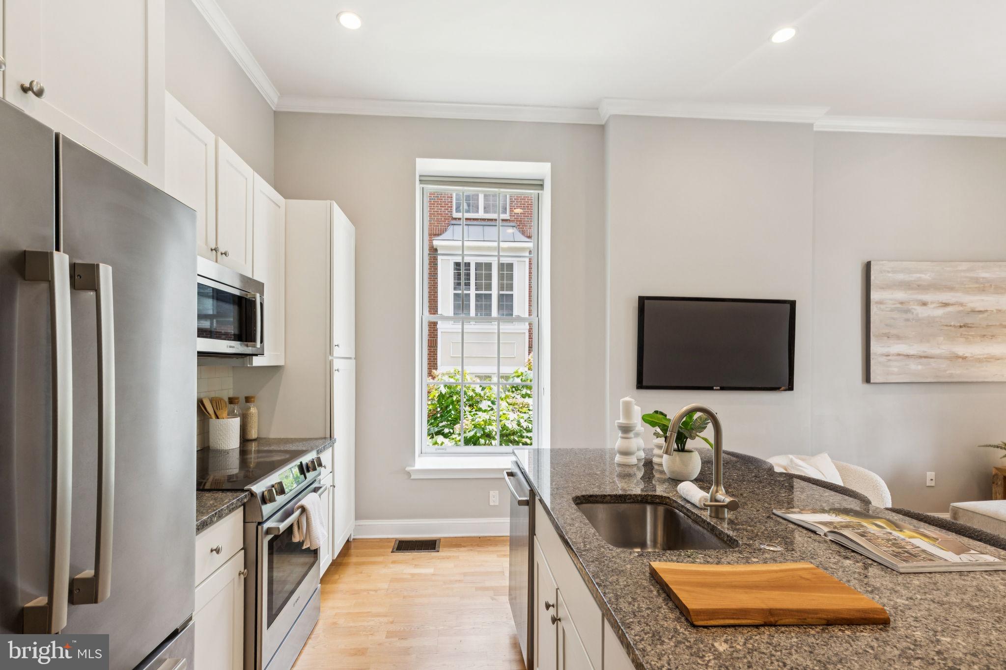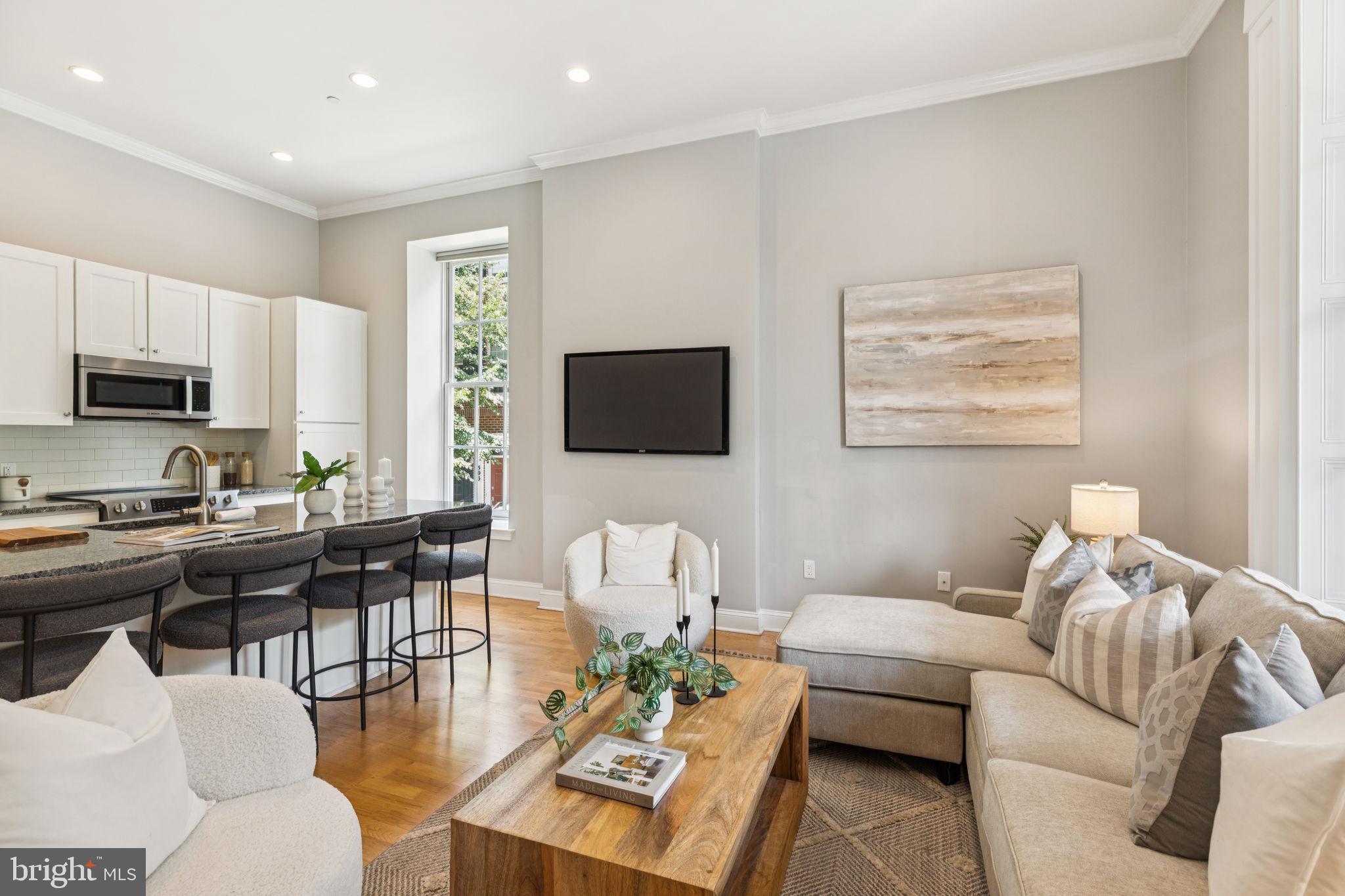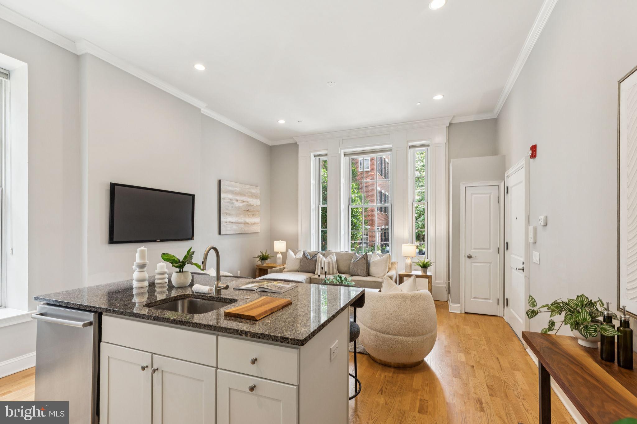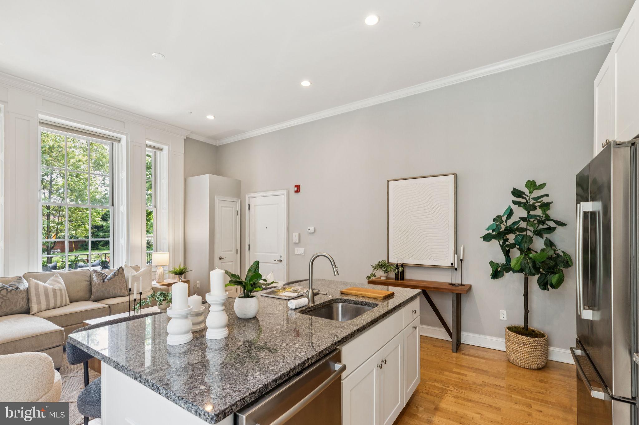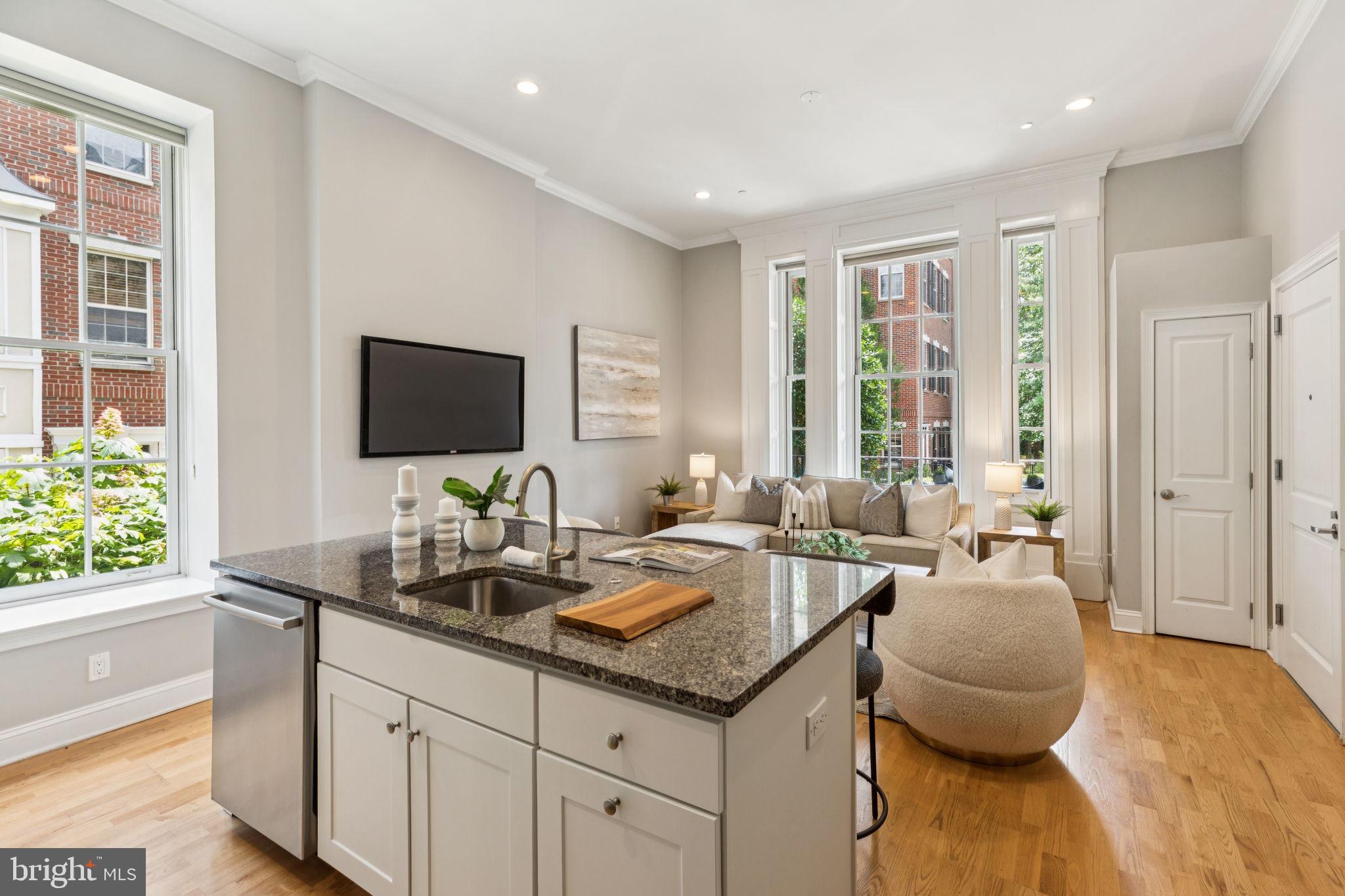 NEW INCREDIBLE PRICE!! Experience the pinnacle of luxury living at 4 Governors Court, a stunning condominium in Philadelphia's prestigious Naval Square community! This rare and highly sought-after 1 bedroom, 1 bath unit offers both deeded parking and an enormous storage locker. Situated on the first level of the desirable Governor's Mansion, a spectacular Greek Revival, boutique building, this home features an covered patio with antique restored iron work showcasing views of the lovely parade grounds! Enter into this stunning condominium and you will be in awe of this gorgeous living space featuring incredible architectural elements throughout: 14' ceilings, oversize windows w/ deep sills, & significant moldings. You will enjoy a lovely open concept living/dining area with plenty of sunlight streaming in from the large historic windows. The custom kitchen with island features freshly painted cabinetry, granite counters, upgraded recessed lighting & stainless Bosch appliance suite. The spacious owners suite has a large closet and more gorgeous historic windows. Beautiful, sunlit bath with window seat features granite and tile & upgrades. Oak hardwood floors, custom window treatments and neutral paint grace the entire living space. Stackable washer/dryer in unit. This unit also includes a huge storage locker located included in the basement of the building. Coat closet at the entryway of the home. Enjoy the ease of having the pool & state-of-the-art fitness center directly across from your building and the concierge close by. The dramatic community room in the Biddle Hall rotunda is perfect to reserve for private parties. Enjoy the outdoor amenities of the 20-acre park-like setting: including picnic areas, well-kept gardens & mature landscaping. With a gated entry and on-site visitor parking, convenience and security are paramount. Very close proximity to South Street Bridge, UPenn (0.7 mi), CHOP, HUP & Drexel, Rittenhouse (0.9 mi) & Fitler Square. Fantastic restaurants and cafes, such as Rival Bros Coffee, Friday Saturday Sunday (James Beard Winner), Illata BYOB, Pub & Kitchen, Southgate, Sabrina's & Loco Pez, are all just steps outside the gates. The new Heirloom Market by Giant and South Square Market are only a block away. Directly out the back gate you will find easy access to the Schuylkill River Park, including the Award Winning Trail & Boardwalk, Markward playground, Tennis Courts & dog park! Naval Square is a pet friendly community allowing up to 2 pets with no weight restrictions. Don't miss this rare opportunity to own a sophisticated, move-in-ready home in one of Philadelphia's most coveted communities! There is a Special Assessment with approximately 5 months remaining. Tax abatement expires 04/25/2026. Buyer's agent is responsible for confirming all taxes. Settlement can be ASAP.